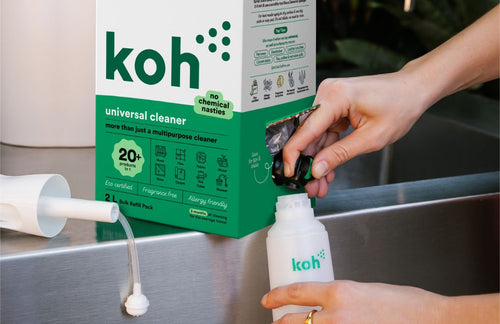 Koh fights dirty by delivering a simple, safe, sustainable, and super effective cleaning solution that rejects cleaning as a chore; instead empowering users to seek the joy of a clean, green home.Read on for more about our simple, safe, sustainable, super effective (and smart) philosophy: