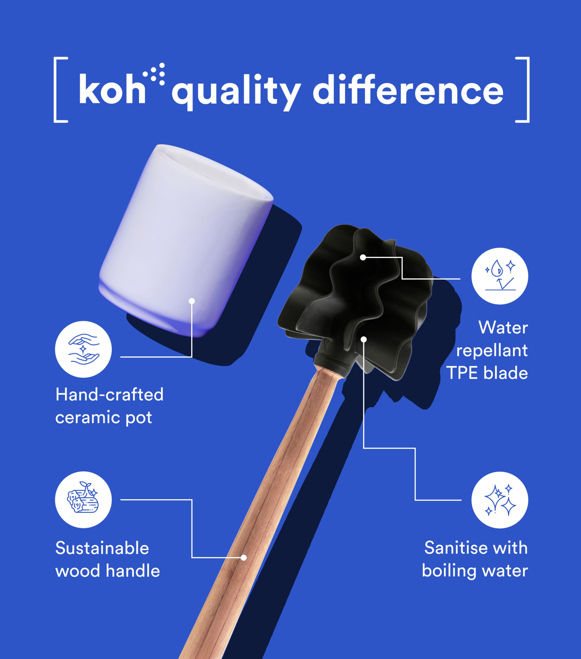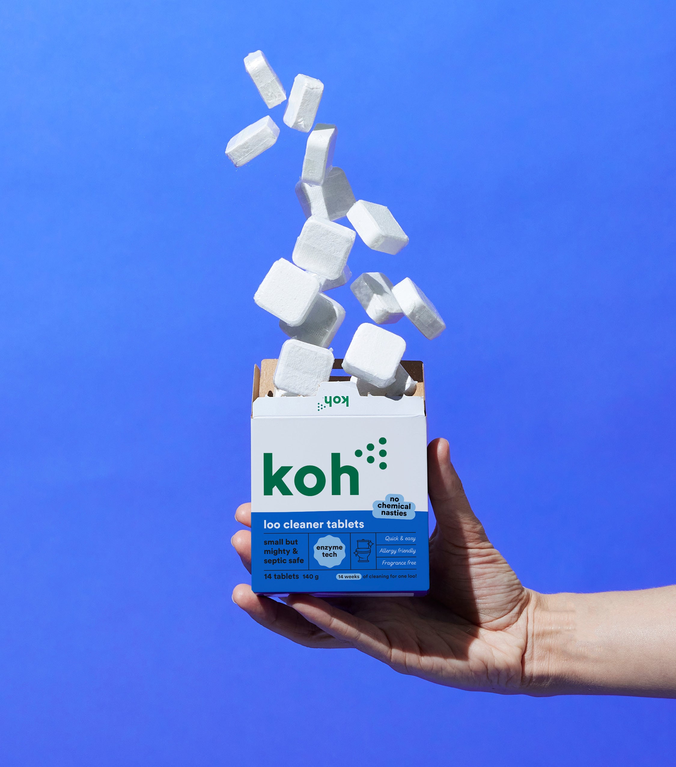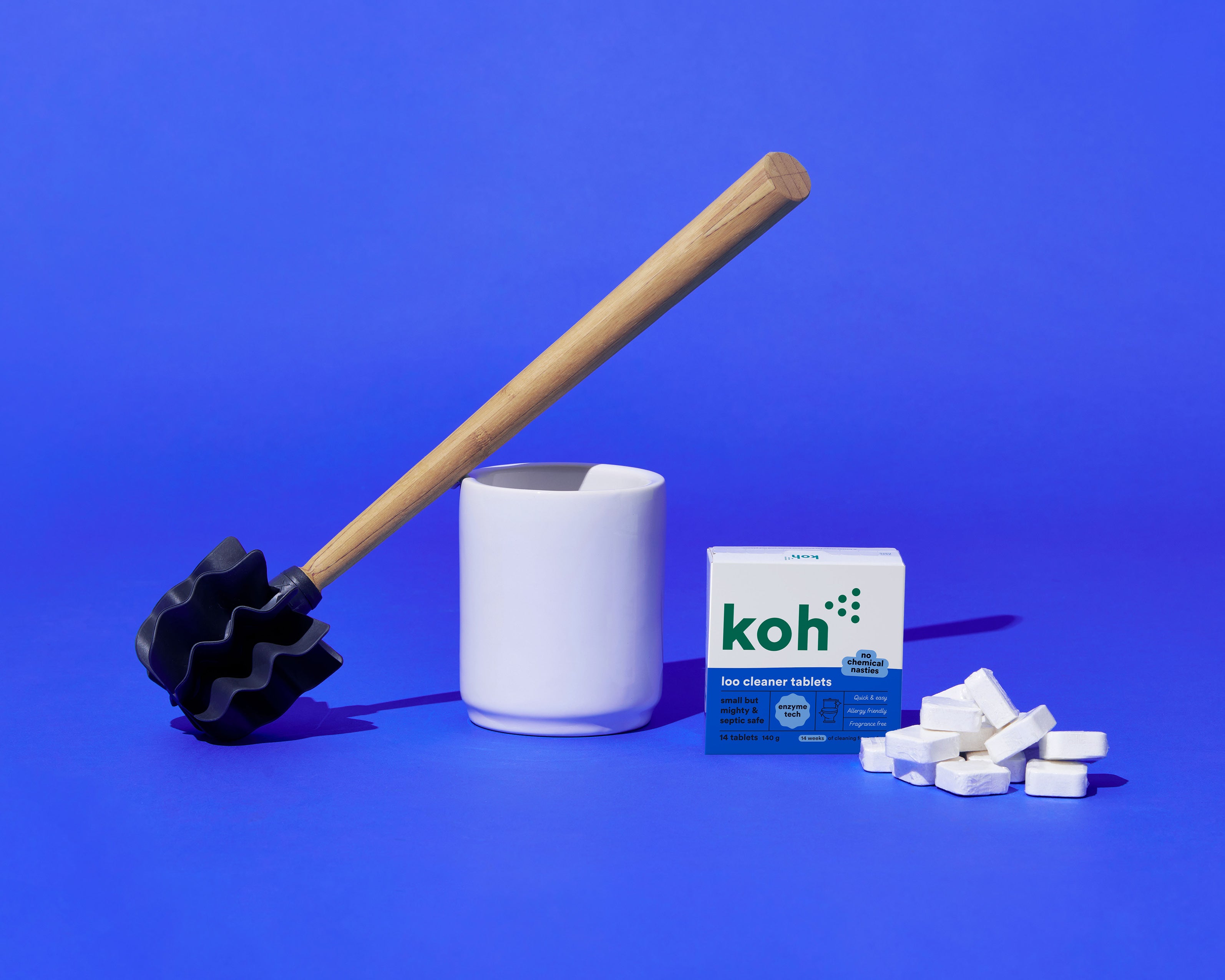 Cleaning the loo is probably the last thing you want to do and for good reason, who wants to spend more time in the toilet? Koh Loo Tabs cut down on scrub time, simply drop one in, let it effervesce, a few good swipes with the Koh Loo Blade and you’re left with a deep and effective clean. Best of all, our eco-certified, septic-safe formula means there’s no crap going down your toilet (only poop).