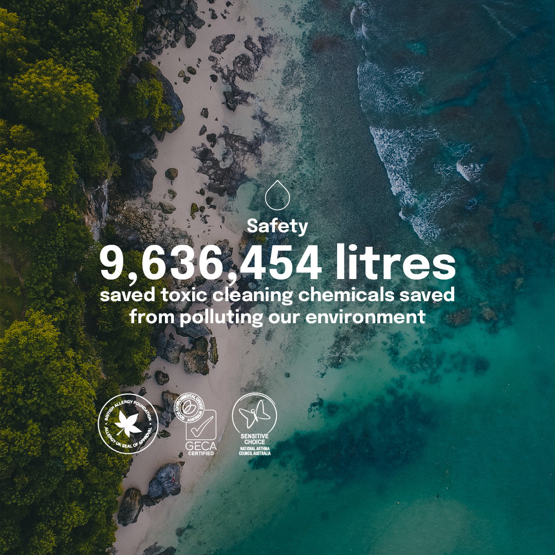 Did you know 1 in 10 Aussies suffer from asthma and allergies and 1 in 5 experience chemical sensitivities and suffer from health problems from exposure to common chemicals and synthetic fragrances in cleaning products. That’s why we developed our science-backed cleaning solutions to be fume, fragrance and chemical nasty free so we could be sure it is a safer choice for our families. Our solutions are proudly certified by Asthma Australia’s Sensitive Choice Program and Allergy UK.