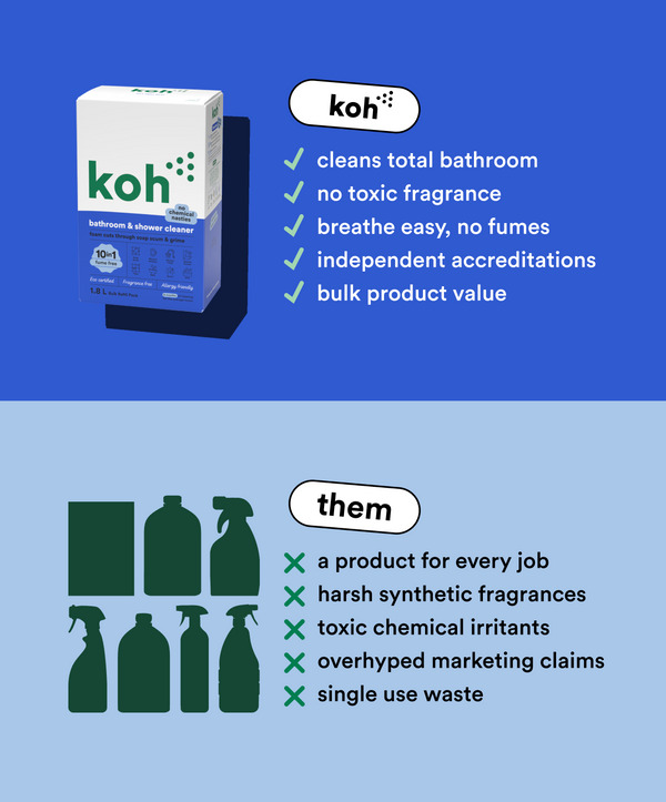 We believe a clean home shouldn’t come at the cost of the environment around us. That’s why Koh's cleaning products are packaged to minimise as much waste as possible and use tools that are reusable, refillable and very long-lasting. What’s on the inside counts too, Koh cleaning products are certified by GECA, Australia’s only independent, not-for-profit sustainability and environmental certification as a good environmental choice.