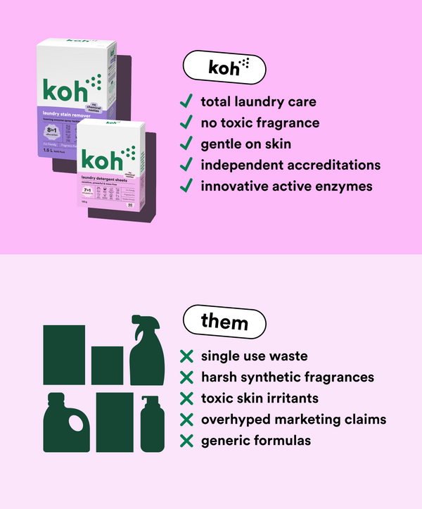 Koh products are proudly fragrance free and independently verified by The National Asthma Council Australia’s Sensitive Choice program and Allergy UK to be suitable for those suffering asthma and allergies.