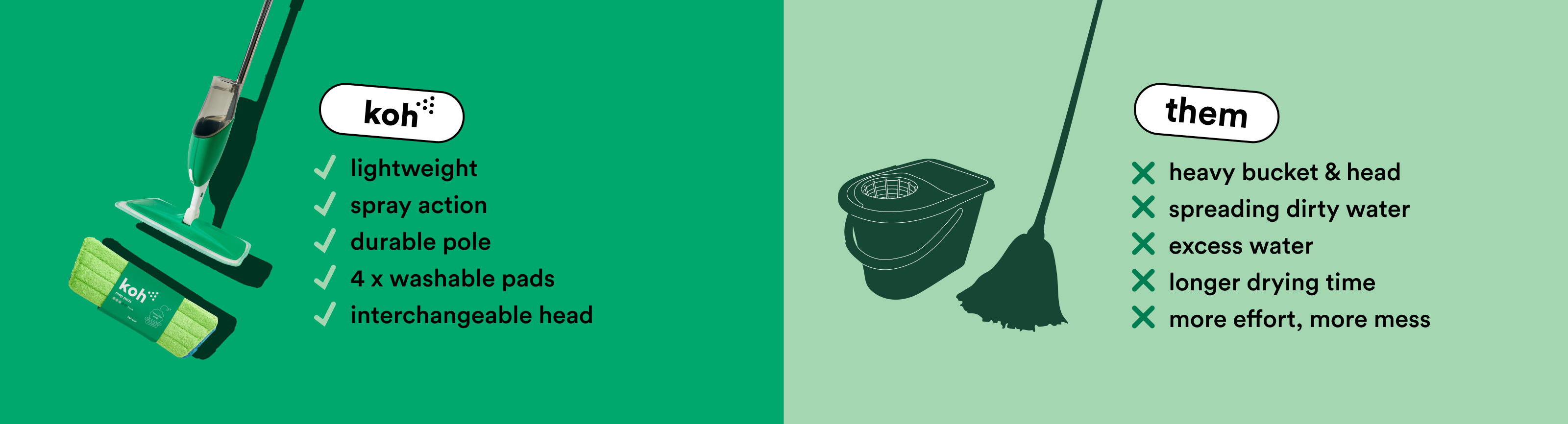 The cleaning industry has long leaned on hardcore chemicals delivered with plenty of elbow grease. At Koh, we believe in less leaning, and more cleaning. That’s why we’ve doubled down on innovation, to develop our own (scientifically tested) products, delivered with tools that make your clean a dream. From atomisers that use less, to loo blades that swipe more, we’ll never stop working hard to make your clean easy.